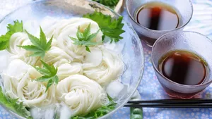 Les nouilles Somen sont très délicates. Blanches et de forme allongée, elles sont faites à base de farine de blé, de sel et d’eau. Elles sont plus fines que les nouilles Udon. Consommées froides, trempées dans un bouillon à base de bouillon de poisson (dashi) et de sauce soja garni de gingembre frais, ces nouilles ultrafines sont un plat très apprécié notamment en été, quand il fait chaud.