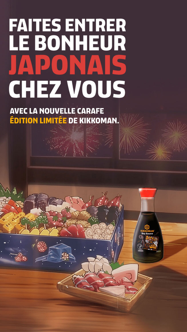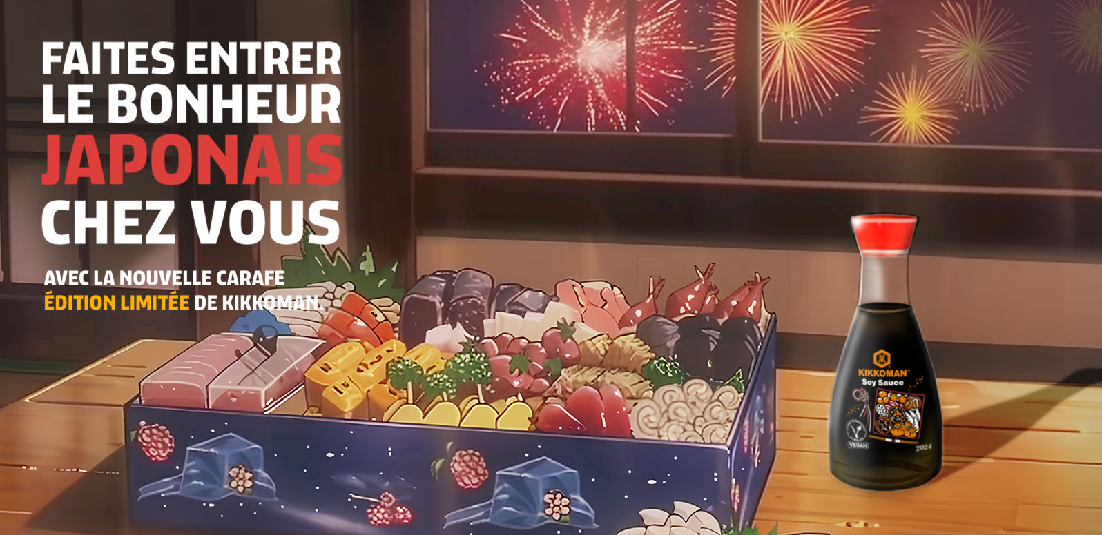 C’est pour célébrer cette tradition que la nouvelle édition limitée de Kikkoman s’orne d’une illustration d’un osechi-ryōri typique. Indissociablement liée à l’histoire japonaise, la sauce soja est votre alliée pour parfumer tous vos plats, japonais comme européens.
