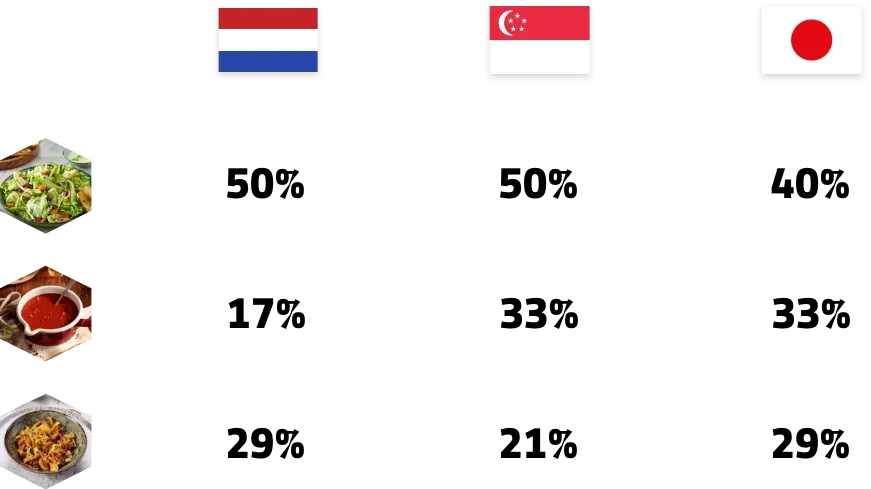 Pourcentage de remplacement du sel par la sauce soja Kikkoman sans influencer les préférences régionales en terme de saveurs :