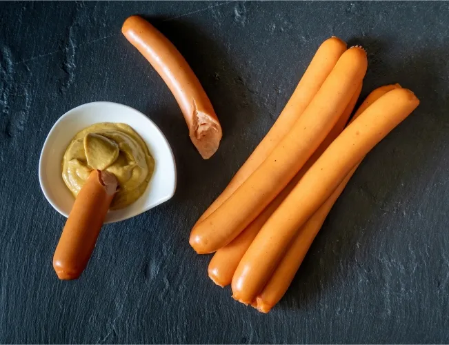 À noter toutefois que les saucisses de Francfort sont souvent accompagnées de condiments sucrés comme le ketchup, qui peuvent modifier l’expérience gustative globale. On pense donc que c'est la combinaison de l’EHEX dans les saucisses et des condiments fruités qui pourrait renforcer la perception du goût salé. Ainsi, les saucisses deviennent plus savoureuses sans nécessité d’augmenter la quantité de sel.