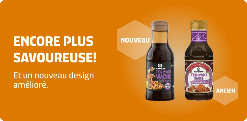 Notre sauce Teriyaki Wok à l’ail confit de Kikkoman revient avec un nouveau design et une recette encore améliorée.