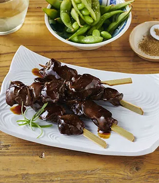 Récupérer l’huile qui reste dans la poêle. Ajouter la Sauce Yakitori ou la Sauce soja sucrée Kikkoman et réchauffer. Remettre les brochettes dans la poêle et les remuer pour qu’elles soient entièrement nappées de sauce.
