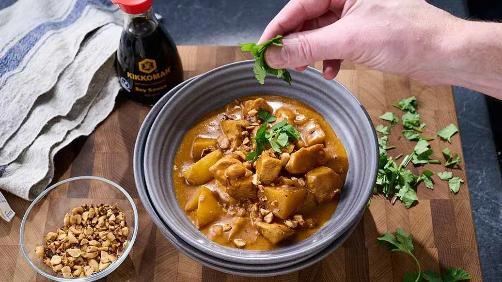 Curry Massaman de poulet, pommes de terre et cacahuètes