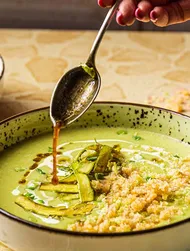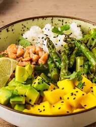Mélanger la sauce soja bio naturellement fermentée Kikkoman, le lait de coco et la fécule de maïs dans 250 ml d’eau.