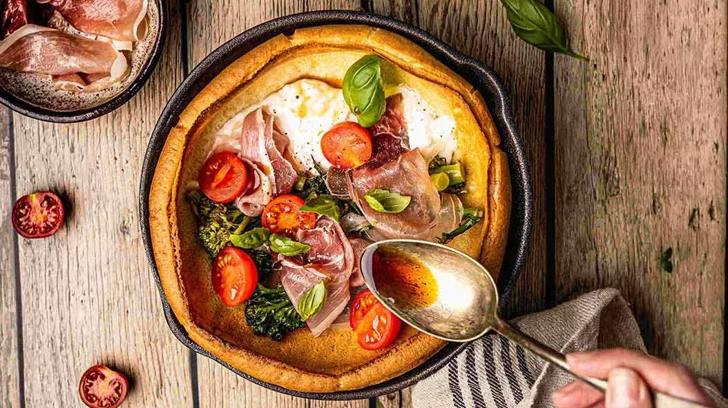 A l’inverse des Pays-Bas, ces pancakes moelleux sont tout sauf plat ! Essayez cette version salée avec de la burrata, du jambon fumé et des brocoli frits Bimi®. Terminez par une touche de sauce soja citronnée Ponzu, et voilà un petit-déjeuner aussi copieux que cosmopolite.