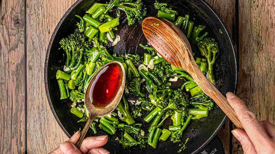 150 g de brocoli Bimi® – 2 càs d'huile d'olive – 1 gousse d'ail – 1 càs Ponzu - un Mélange de Sauce Soja et Vinaigre, goût Citron Kikkoman