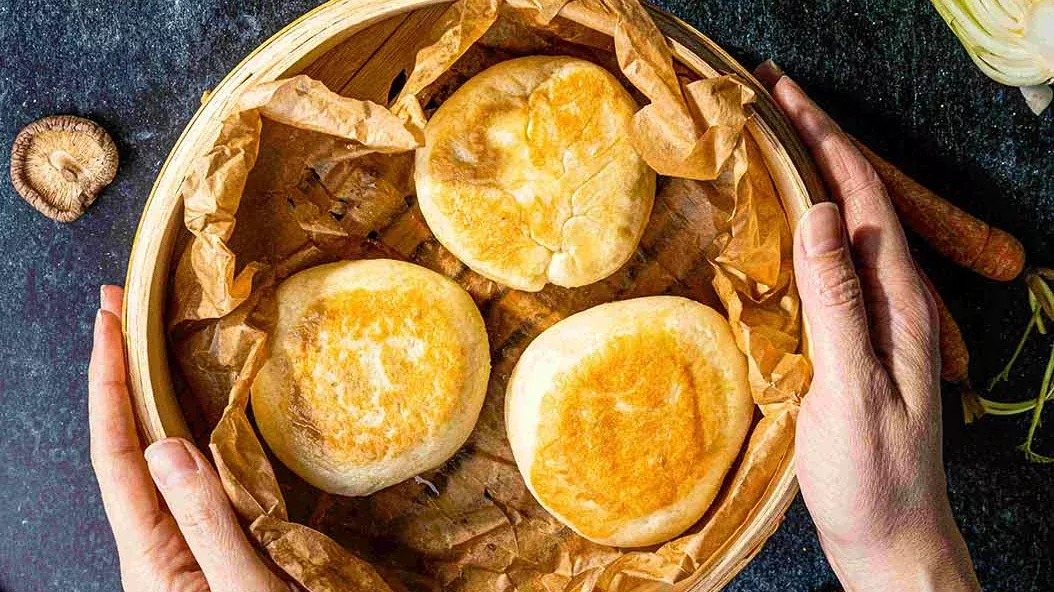 Chauffer l'huile dans une poêle, faire légèrement dorer les petits pains des deux côtés avant de faire cuire à la vapeur pendant 5 à 7 minutes.