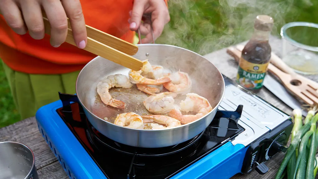 Faire mariner les crevettes dans l'huile de sésame Kikkoman pendant 5 minutes, puis les faire cuire dans une poêle chaude pendant 4 à 5 minutes jusqu'à ce qu'elles soient roses et bien cuites.