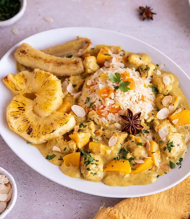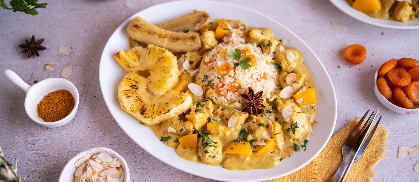 Riz Casimir — curry de poulet doux aux fruits