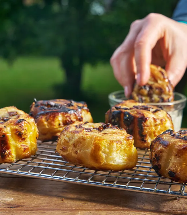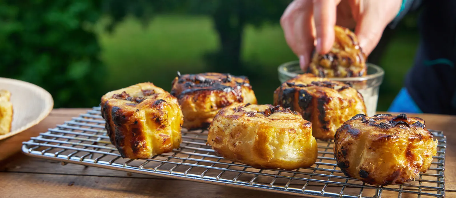 Roulés de pâte feuilletée croustillants garnis de champignons savoureux marinés à la sauce teriyaki Kikkoman, servis avec une sauce dip mayonnaise crémeuse à l’aneth.