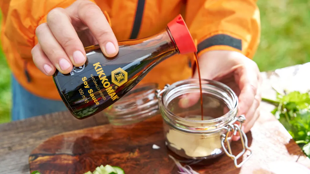 30 ml Sauce soja fermentation naturelle Kikkoman – 10 ml de vinaigre de riz – 10 ml de sirop d'érable ou de miel – 10 g de tahini