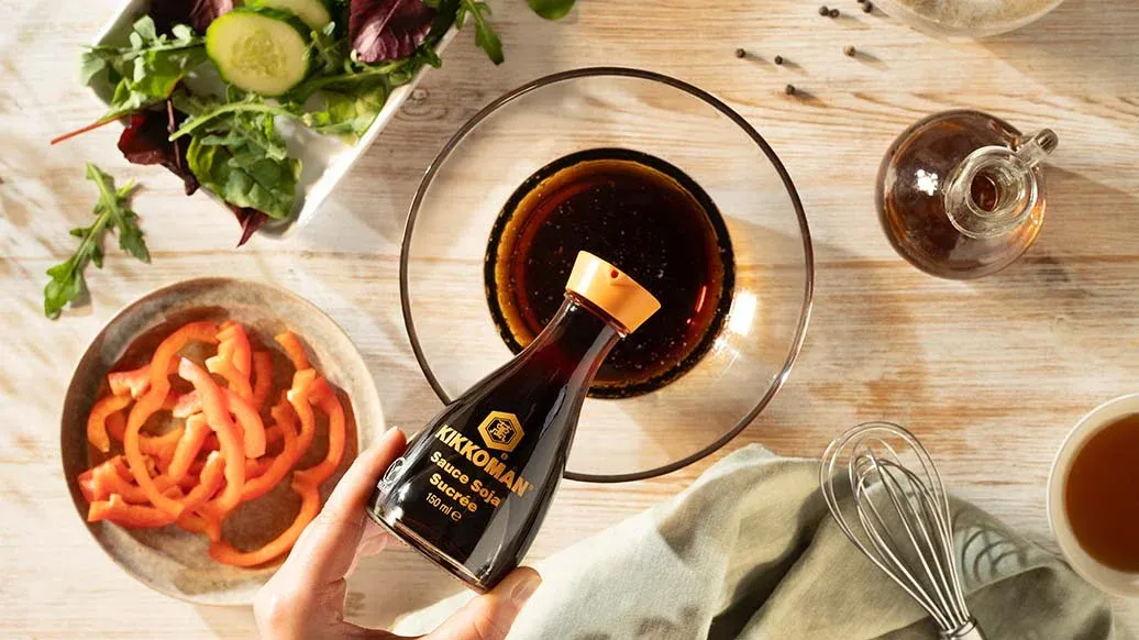 Dans un bol, mélanger l'huile de sésame Kikkoman, le vinaigre de riz, le miel, la sauce soja sucrée Kikkoman, le sel et le poivre. Remuer jusqu'à obtention d'un mélange homogène. Utiliser la vinaigrette pour assaisonner les salades ou les légumes sautés.
